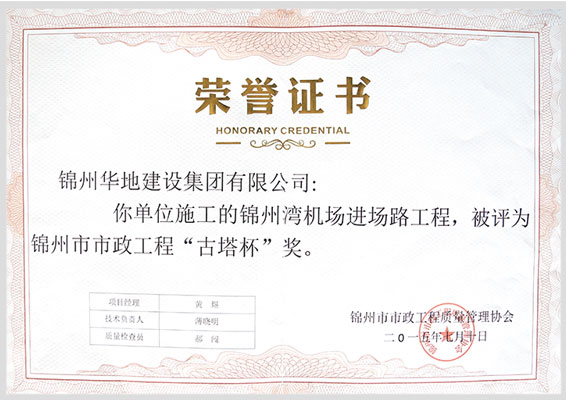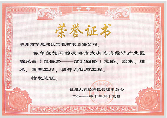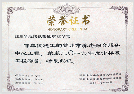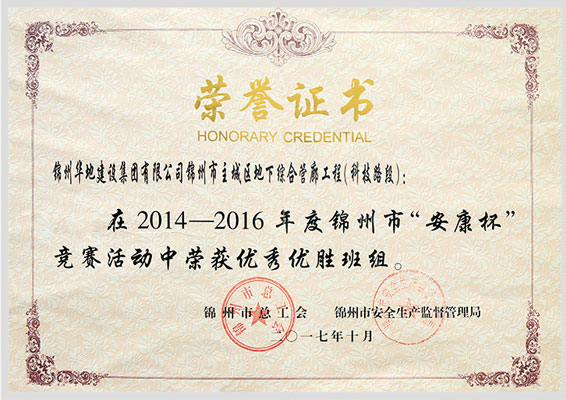 企業(yè)10余年開(kāi)拓進(jìn)取過(guò)程中先后榮獲“遼寧省建筑業(yè)優(yōu)秀企業(yè)”“遼寧省AAAAA級信用企業(yè)”“遼寧省建設工程優(yōu)質(zhì)結構企業(yè)”“遼寧省建設工程世紀杯(省優(yōu)質(zhì)工程)企業(yè)”連續6年榮獲“遼寧省守合同重信用企業(yè)”,連續5年榮獲“重點(diǎn)工程招投標領(lǐng)域AAA級信用企業(yè)”,連續10年榮獲“錦州市先進(jìn)企業(yè)”及安全生產(chǎn)目標管理先進(jìn)單位”“優(yōu)秀誠信企業(yè)””國家AAAA級旅游景區””省級生態(tài)旅游示范區””遼寧省省級旅游度假區”等榮譽(yù),并通過(guò)質(zhì)量管理體系、環(huán)境管理體系、職業(yè)健康安全管理體系認證。