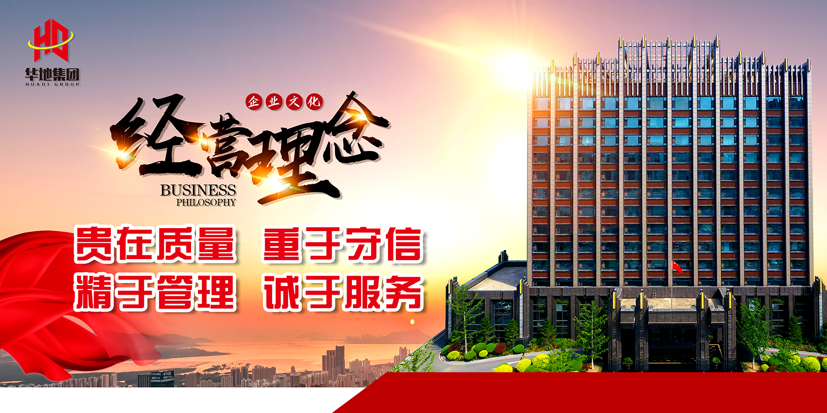 締造百年華地:繼往開(kāi)來(lái),志存高遠。著(zhù)眼未來(lái),華地人不忘初心,突破自我,科學(xué)管理,聚焦大基建、大消費、大投資,逐步實(shí)現建筑施工、地產(chǎn)開(kāi)發(fā)、生態(tài)旅游、綠色農業(yè)、PPP項目,全產(chǎn)業(yè)鏈經(jīng)營(yíng)的“專(zhuān)業(yè)化、標準化、信息化、區域化、國際化”,傾力打造精品工程、精品農業(yè)、精品旅游、精品投資項目,為員工締造百年常青企業(yè)。