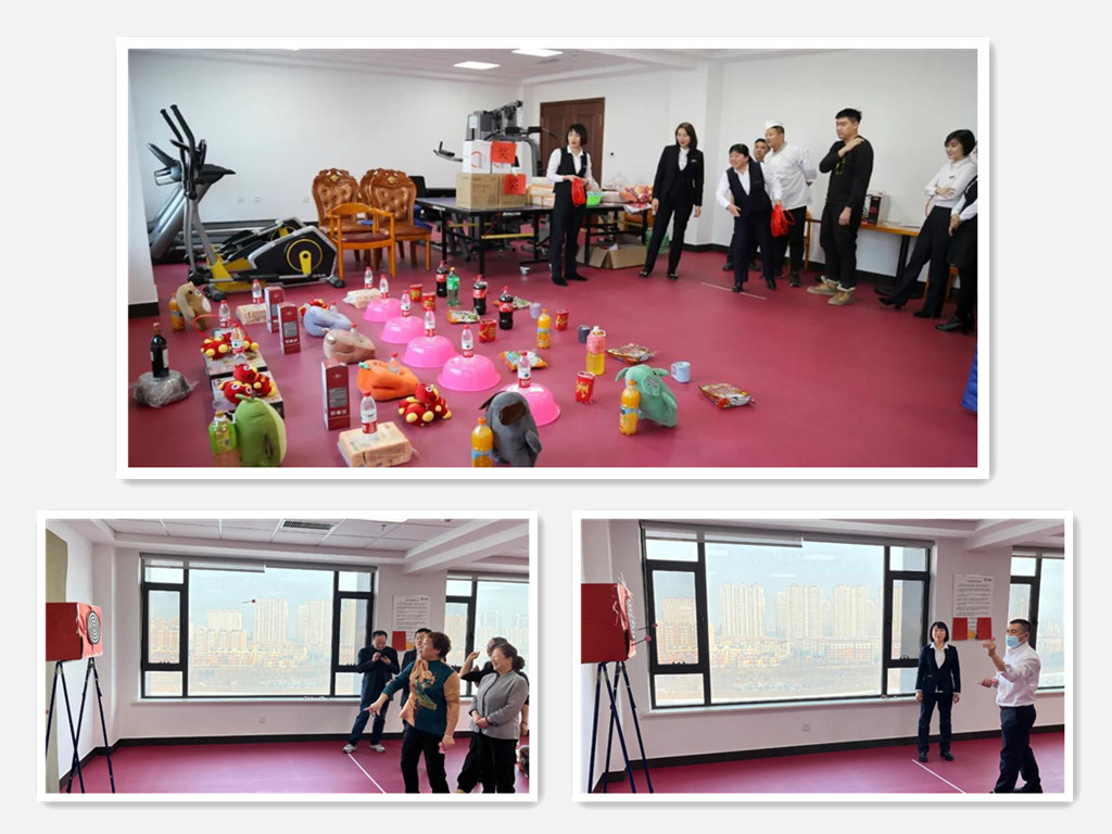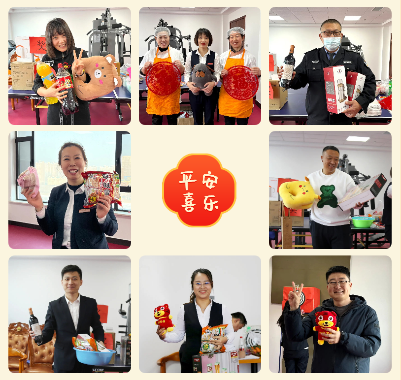 套圈活動(dòng)現場(chǎng),福字、春聯(lián)、飲料、保溫杯、抱枕、餐具套裝等等,還有價(jià)值2000元的紅酒,隨著(zhù)一聲聲歡呼,參加活動(dòng)的同事滿(mǎn)臉笑容的一堆堆套走。飛鏢靶前,屏氣凝神,大家為投手吶喊助威。