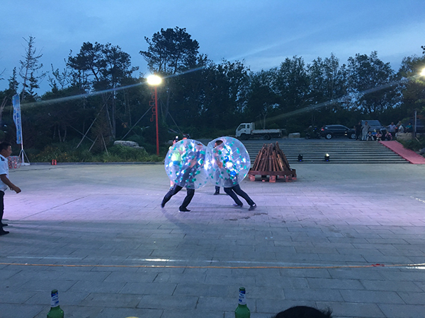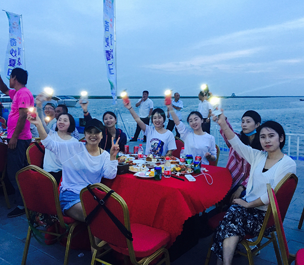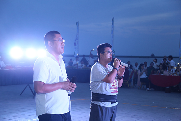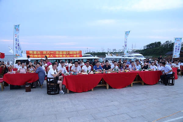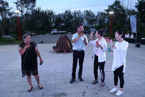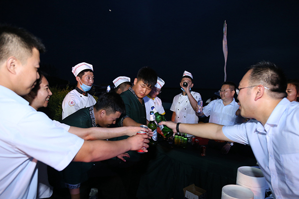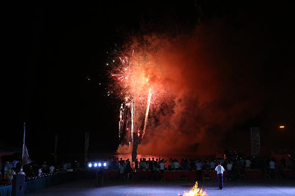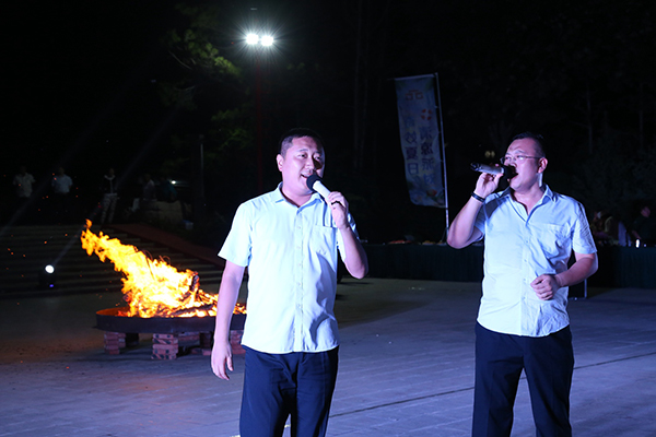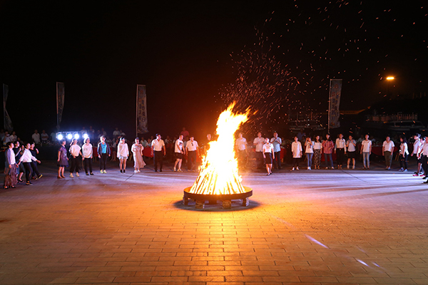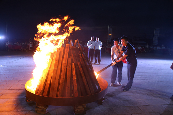 領(lǐng)導為大家點(diǎn)燃篝火