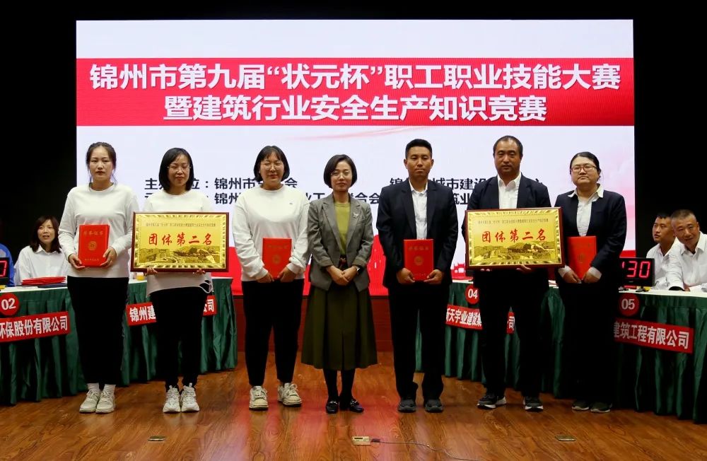 2022年9月23日下午,錦州華地建設集團參加由錦州市總工會(huì )、錦州市城市建設服務(wù)中心主辦;錦州市行業(yè)工會(huì )聯(lián)合會(huì )、錦州市建筑業(yè)協(xié)會(huì )聯(lián)合承辦的錦州市第九屆‘狀元杯’職工職業(yè)技能競賽暨建筑行業(yè)安全生產(chǎn)知識競賽”,在30家參賽隊伍中參加筆試并且突出重圍進(jìn)入決賽,最終榮獲本次決賽第二名,由錦州市總工會(huì )生產(chǎn)保護部部長(cháng)鮑春香為他們頒獎。